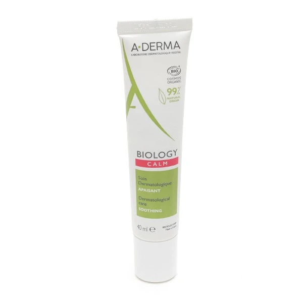 Pour soulager efficacement ces sensations d’inconfort et diminuer la réactivité cutanée, A-Derma a créé le Soin dermatologique apaisant A-Derma Biology Calm. Formulé à partir d’ingrédients à 99 % d’origine naturelle, ce soin pour peau sensible et réactive assure une tolérance optimale. La noix de Kola, l’un des ingrédients clés de ce soin du visage va apaiser immédiatement toute sensation d’inconfort et d’échauffement et vous procurer un bien-être immédiat. L’avoine Rhealba qui entre également dans la composition de ce soin dermatologique bio est l’ingrédient phare d’A-Derma. Il permet de rééquilibrer et d’hydrater la peau. Il contribue ainsi à la régénération de la barrière cutanée. La peau est parfaitement hydratée pendant 24h et redevient belle, souple et confortable.