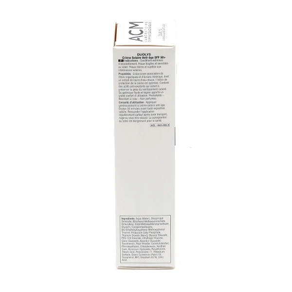 La crème solaire anti-âge Duolys SPF50+ de ACM est résistante à l’eau. Il est toutefois nécessaire de renouveler régulièrement son application en cas d’exposition prolongée.
