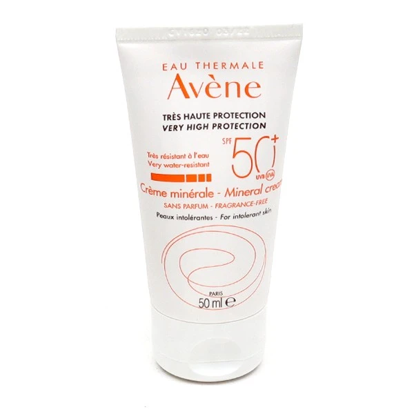 Le tocophéryl, anti-oxydant très puissant, protège les cellules cutanées des radicaux libres. L’eau thermale d’Avène, qui associe l’hydratation et la pureté, offre ses vertus apaisantes et anti-irritantes à cette protection solaire. La crème minérale solaire SPF50+ est résistante à l’eau et légèrement teintée, sa texture riche et onctueuse protège et hydrate les peaux intolérantes.