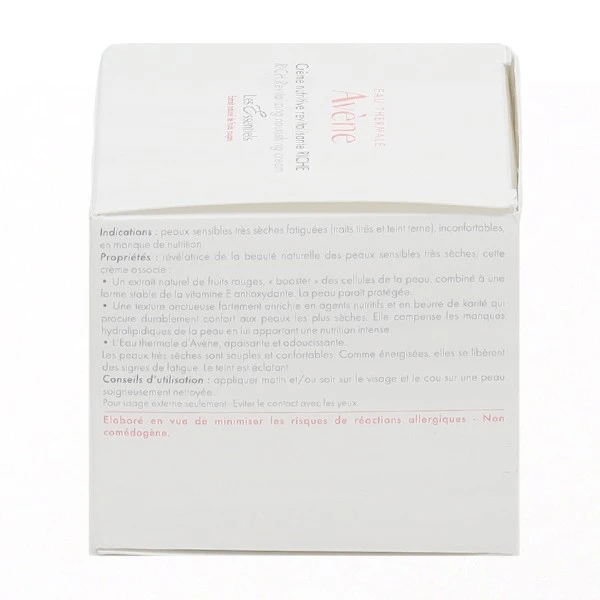 La crème nutritive revitalisante d’Avène associe de l’extrait de fruits rouges qui va stimuler les cellules cutanés et protéger la peau, avec la vitamine E, véritable agent anti-oxydant.