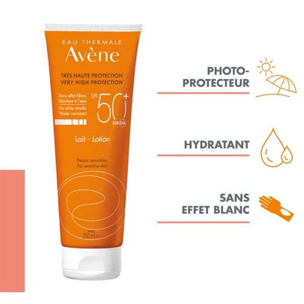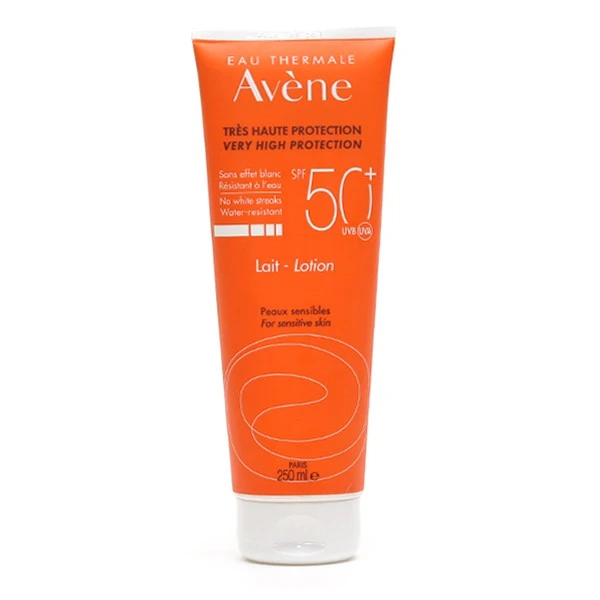Ce lait solaire SPF 50+ Avène pour visage et corps est riche en Eau Thermale d’Avène et offre une texture fluide hydra-protectrice qui permet de réduire le dessèchement cutané et ainsi offrir un confort et une sensation de fraîcheur. Hypoallergénique et non comédogène, cette lotion a pour rôle de minimiser les risques d’allergie et de réaction cutanée et s’adapte aux peaux les plus fragiles et hypersensibles au soleil.