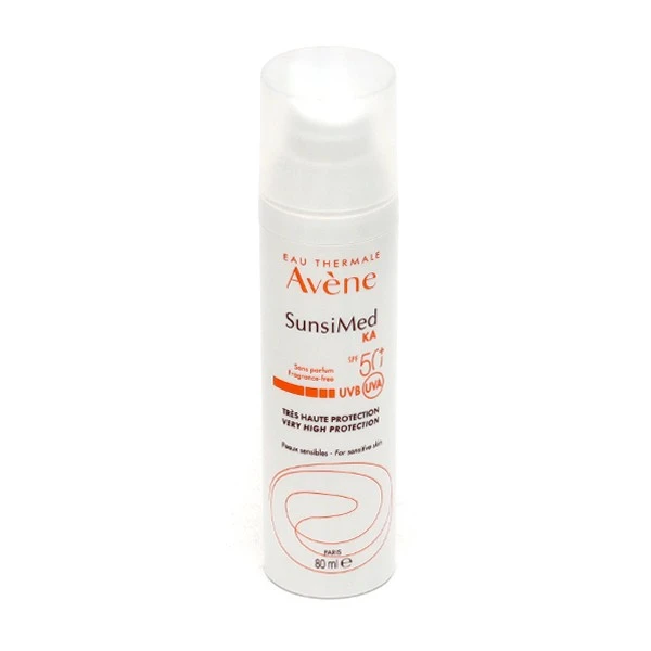 Le soin SunsiMed KA 50+ d’Avène se présente dans un flacon doté d’une pompe, ce qui facilite le dosage en évitant le gaspillage de produit. Non comédogène, la formule ne contient pas de parfum afin de garantir aux peaux sensibles une parfaite tolérance. Elle est également hypoallergénique.