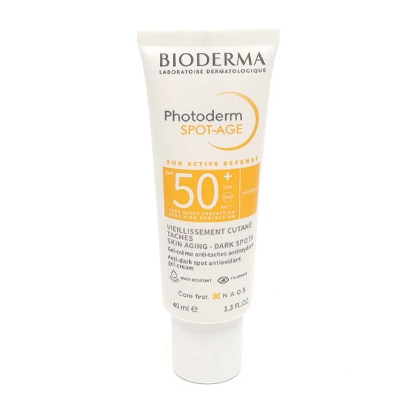 Riche en acides gras, le gel crème Spot Age Photoderm SPF 50+ Bioderma assure l’hydratation du derme et de l’épiderme et forme un bouclier puissant contre les rayons UV du fait de son indice SPF de 50+.