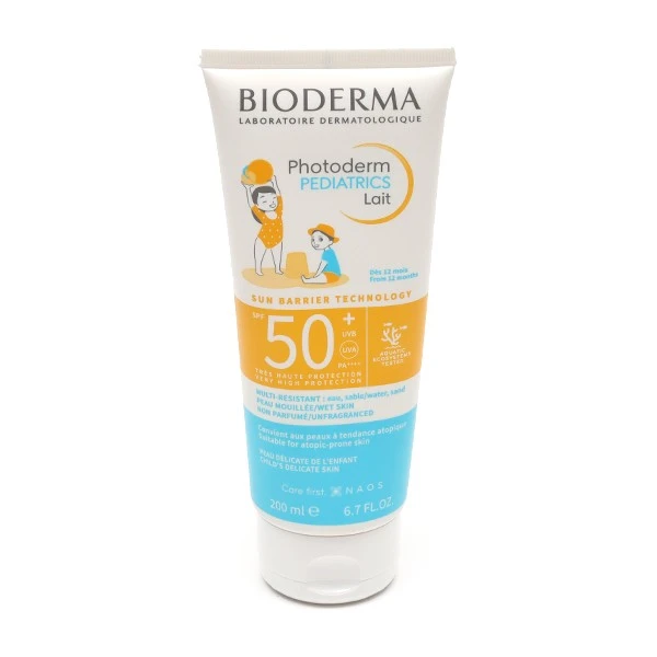 Pour protéger la peau des bébés et des enfants, dès 12 mois, Bioderma a créé le lait Photoderm Pediatrics SPF 50 +. Cette crème solaire bébé bénéficie d’un SPF 50+ et assure une très haute protection à large spectre. Elle permet ainsi de protéger la peau de votre enfant aussi bien des UVB, responsables notamment des coups de soleil (rougeurs), que des UVA courts et longs, qui favorisent le développement des radicaux libres, le vieillissement prématuré de la peau et l’apparition de mélanomes. Pour ce faire, elle tire parti de la Sun Barrier Technology. Mise au point tout spécialement pour la peau sensible des enfants, cette technologie associe des filtres solaires, des antioxydants (vitamine E) et de l’huile de noyaux d’abricot pour protéger la peau des enfants et renforcer leur barrière cutanée. Enfin, de la glycérine vient parfaire la formule de cette protection solaire pour enfant afin d’hydrater la peau et prévenir sa déshydratation. La peau de votre enfant est protégée, souple, douce et confortable.