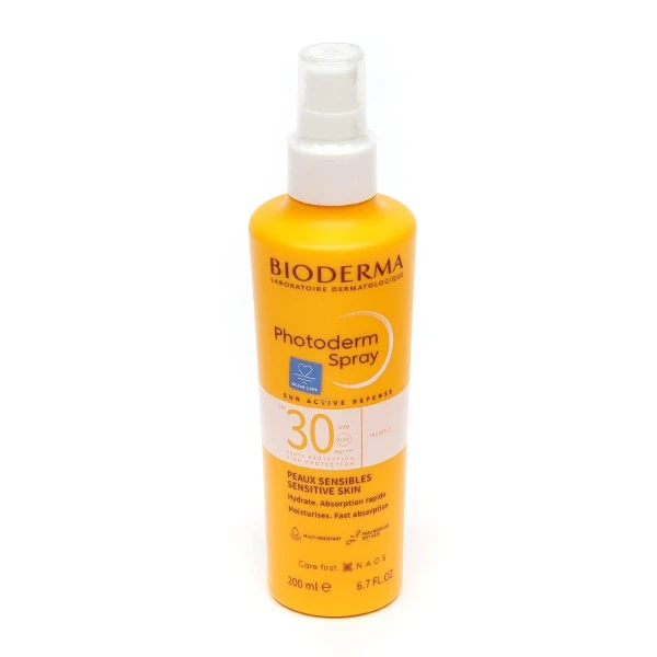 Bioderma Photoderm SPF 30 spray haute protection solaire est simple à utiliser et il est résistant à l’eau. Il incorpore des filtres contre les UVA et les UVB.