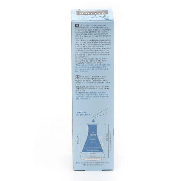 Du fait de leur finesse naturelle, les peaux les plus fragiles sont les plus altérables par le moindre changement climatique et les frimas de l’hiver. Elle ne parvient pas à freiner son dessèchement et à retenir suffisamment les molécules d’eau pour préserver ses métabolismes. Le sérum SOS hydratation Cattier est doté d’un jus végétal actif qui combine l’action antioxydante des sucres de fruits de l’abricot et les nombreux nutriments de l’aloe vera (vitamines, minéraux, acides aminés, etc.) afin de nourrir intensément le derme et de renforcer l’activité cellulaire propre à régénération des tissus. Ce complexe travaille également de pair avec l’acide hyaluronique qui assure une captation importante de molécules d’eau, laissées à la disposition des cellules. Ceci a pour double effet de renforcer l’hydratation et de repulper légèrement l’épiderme.