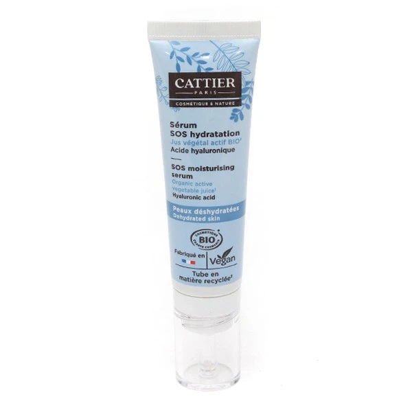 Le laboratoire Cattier vous présente son sérum SOS hydratation, adressé à toutes les peaux sujettes à une déshydratation importante. Avec 77 % de ses ingrédients issus de l’agriculture biologique et 99 % du total d’origine naturelle, ce soin du visage respecte votre peau en même temps que l’environnement, mais ne s’arrête pas là puisqu’il n’utilise aucune substance animale et convient ainsi parfaitement aux personnes véganes. Il s’appuie sur un jus végétal actif Bio, breveté par la marque, et de l’acide hyaluronique pour désaltérer le derme et redonner toute sa souplesse à l’épiderme.