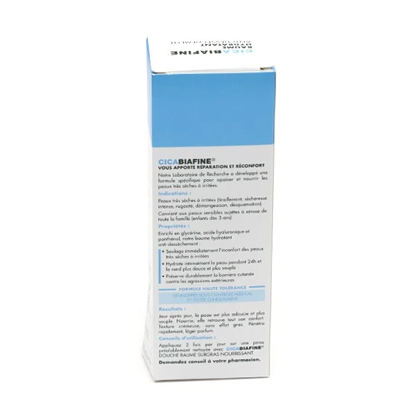 Cicabiafine est une marque désignant les dermo-cosmétiques réparateurs du laboratoire Biafine. Elle est conçue pour répondre aux problèmes de peaux sèches de votre corps.