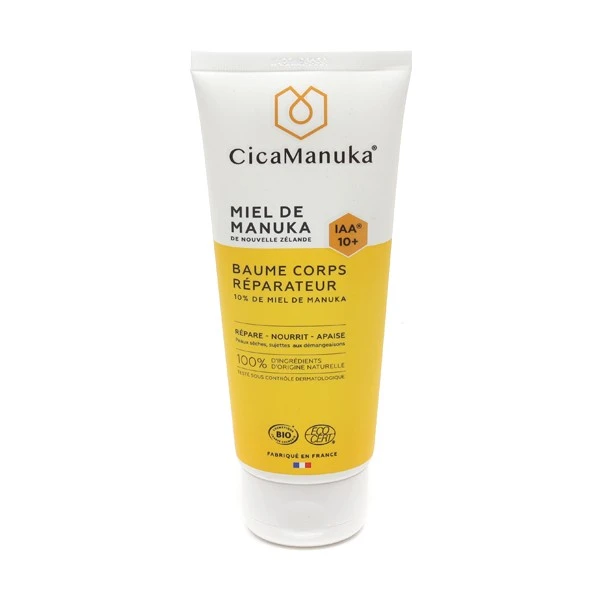 L’ingrédient clef de CicaManuka baume corps réparateur bio, c’est le miel de Manuka indice IAA10+, miel très particulier qui contient du méthylglyoxal, réputé notamment pour ses vertus cicatrisantes.