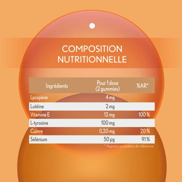 Cuivre pour contribuer à la pigmentation normale de la peau. Il est associé à la L-tyrosine, précurseur de la mélanine.