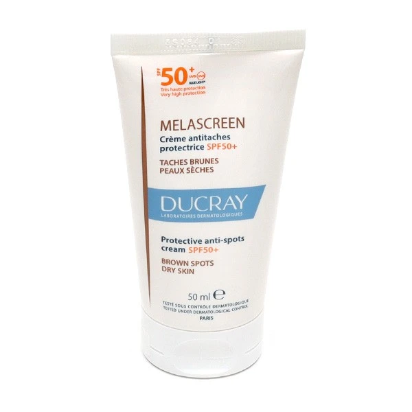 La crème antitaches protectrice SPF 50+ Ducray Melascreen possède une texture fondante qui la rend très agréable à applique, ainsi qu’un fini invisible, quelle que soit la couleur de la peau, et non gras. Elle offre une bonne tolérance. Elle peut être utilisée par les femmes enceintes ou allaitantes. Enfin, elle constitue une excellente base de maquillage.