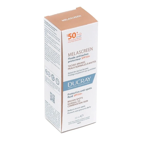 Melascreen SPF 50+ Fluide protège des hyperpigmentations liées au soleil, des taches brunes localisées et des taches de vieillesse. L’acide azélaïque contribue à limiter les taches brunes et à protéger du photovieillissement grâce à sa propriété antioxydante. La peau retrouve son éclat, les hyperpigmentations liées au soleil sont atténuées et le teint redevient uniforme.
