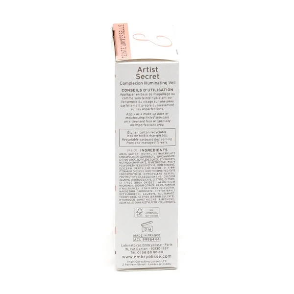 Le voile illuminateur de teint SPF 20 Embryolisse peut être utilisé en tant que soin hydratant quotidien, base de maquillage ou crème teintée. Il permet d’obtenir un grain de peau uniforme et velouté sans effet de matière ni démarcations. Le teint est matifié et éclatant pour toute la journée.