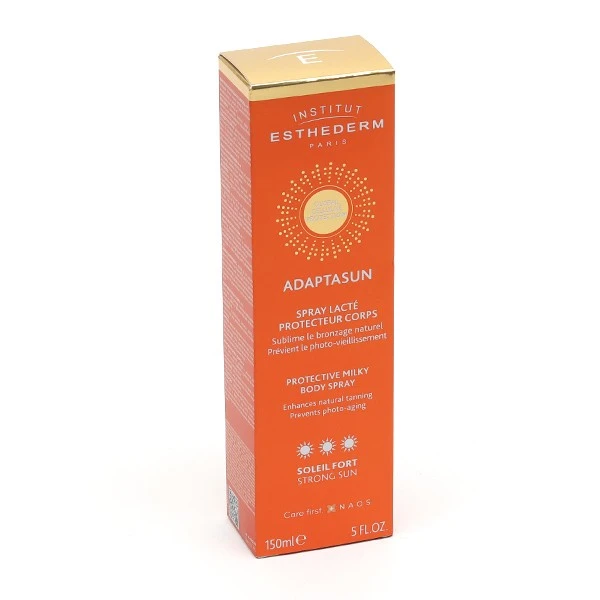 Avec le spray lacté protecteur corps Adaptasun Esthederm Soleil fort, votre peau est protégée et votre bronzage sublimé.