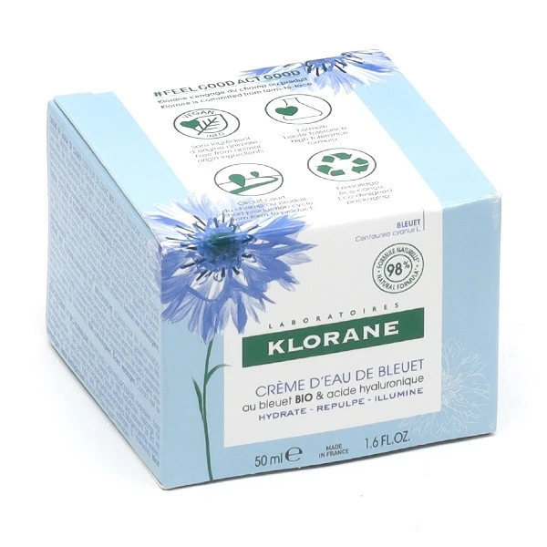 Grâce à la crème d’eau de Bleuet de Klorane, la peau est immédiatement désaltérée, rebondie et éclatante de vitalité.