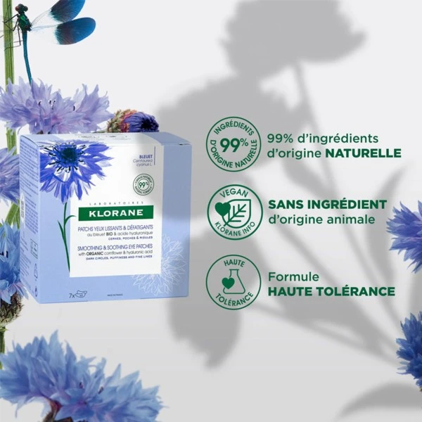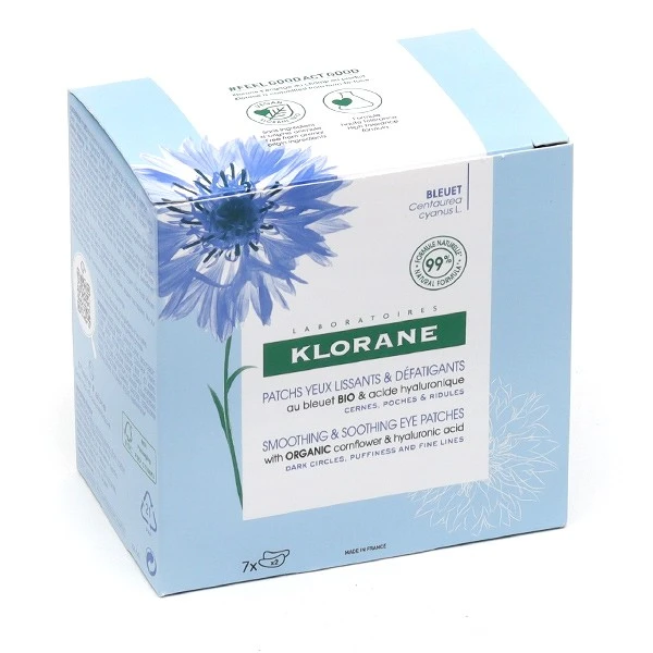 Les patchs lissants et défatigants Klorane combinent le bleuet aux propriétés repulpantes de l’acide hyaluronique. A cela, s’ajoutent les capacités hydratantes et lissantes de la glycérine. Leur utilisation apporte des résultats significatifs pour un regard plus intense et visiblement défroissé.