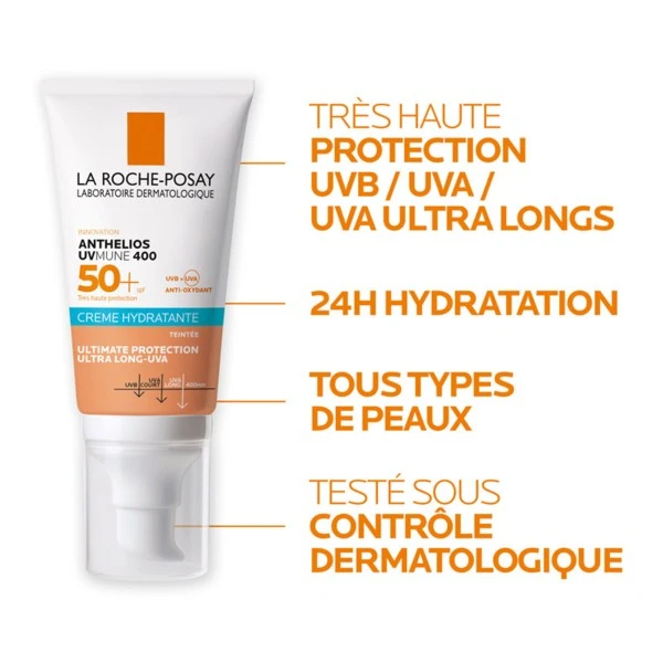 Cette crème hydratante UBMune 400 Anthelios de La Roche Posay a été testée sous contrôle dermatologique ainsi que sur des porteurs de lentilles de contact afin de prouver toute son innocuité. Dans le cas où votre peau marque de premiers sillons, le sérum Hyalu B5 anti-rides La Roche Posay saura réhydrater et repulper votre derme.