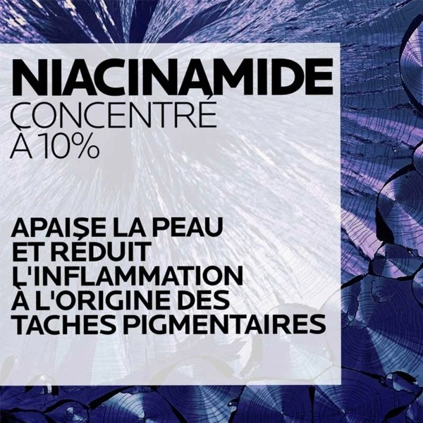 L’efficacité du sérum Pure Niacinamide 10 de La Roche-Posay contre les taches pigmentaires repose sur trois actifs : l’HEPES, le PhE résorcinol et surtout la niacinamide. L’HEPES est exfoliant. Ainsi, il va contribuer à éliminer les cellules de la peau qui ont accumulé de la mélanine. Il va aussi apporter un effet lissant. Le PhE résorcinol procure une action éclaircissante. Mais l’actif clef de ce sérum est, comme son nom l’indique, la niacinamide. Anti-inflammatoire, elle agit donc à la racine du problème. Par ailleurs, elle soutient la barrière cutanée. A cela s’ajoute l’action de l’acide hyaluronique de haut poids moléculaire, qui va hydrater la peau et la repulper.
