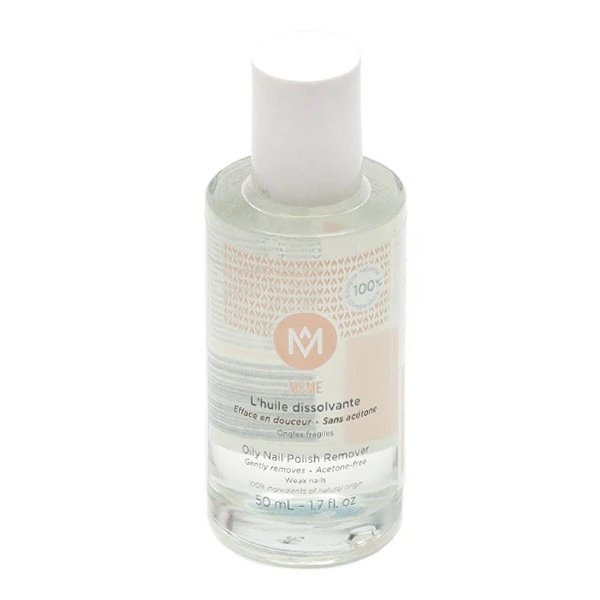 Avec l’huile dissolvante Même Cosmetics, vos ongles sont nourris et protégés et délicatement démaquillés. Sa texture hydratante et non grasse de demande aucun rinçage et un seul coton suffit pour démaquiller les deux mains.