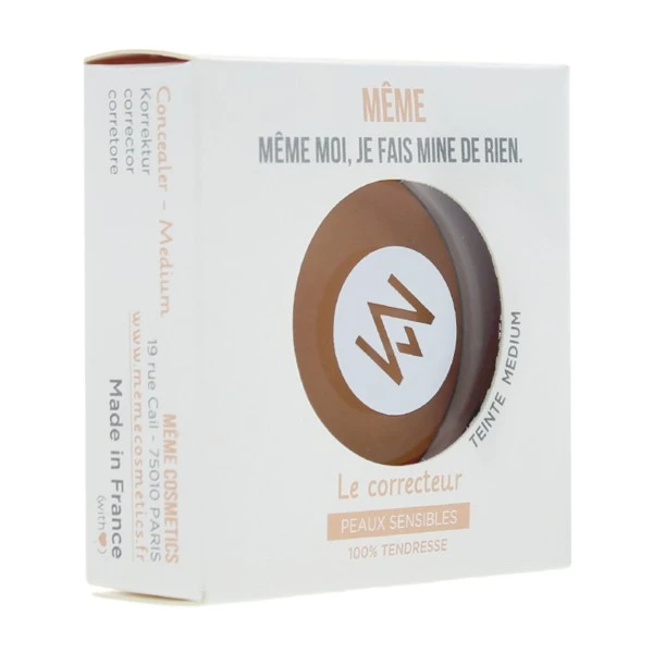 Comme n’importe quel autre type de peau, les peaux sensibles sont parfois sujettes à de petites imperfections (boutons, taches, cicatrices, plaques, rougeurs, etc.) ou laissent apparaître des cernes disgracieux qui viennent ternir vos réveils et vos journées. Avec le correcteur de teint Même aux pigments naturels, vous pouvez désormais dissimuler naturellement ces imperfections. Son pouvoir couvrant est excellent et confortable, pour rester le plus naturel possible. Son fini mat participe également à cet effet. Le correcteur de teint Même tient parfaitement, pour vous donner bonne mine toute la journée !
