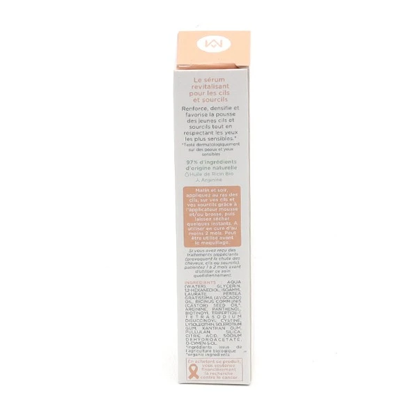 Avec ses 97 % d’ingrédients d’origine naturelle, le sérum cils et sourcils revitalisant Même a pour mission de renforcer le cils et les sourcils et de stimuler la croissance des poils afin de les redensifier. Il contient en premier lieu de l’huile de ricin qui agit en nourrissant profondément le derme et le bulbe pileux avec comme objectif de maintenir une bonne hydratation interne et de freiner par ailleurs le dessèchement des fibres capillaires. Le deuxième actif concerne l’arginine qui a pour bienfaits d’assouplir les cils et les sourcils afin de les rendre moins cassants. Des acides aminés, enfin, parachèvent la formule et fournissent le réseau cellulaire en nutriments essentiels à sa régénération et à la croissance pileuse.