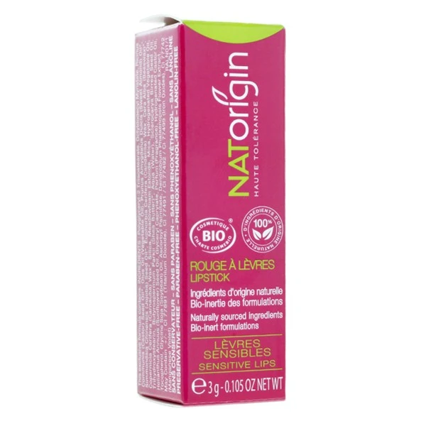 Le rouge à lèvres Natorigin est formulé à base d’ingrédients 100 % naturels et est formulé pour les lèvres sensibles.