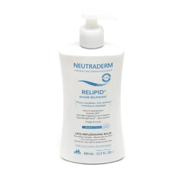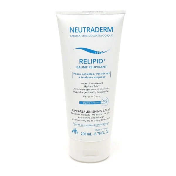 Le baume relipidant Relipid+ de Neutraderm est spécialement conçu pour répondre aux besoins des peaux sensibles et sèches à tendance atopique. Il va les nourrir et les hydrater. Il convient aussi bien pour le visage que pour le corps.