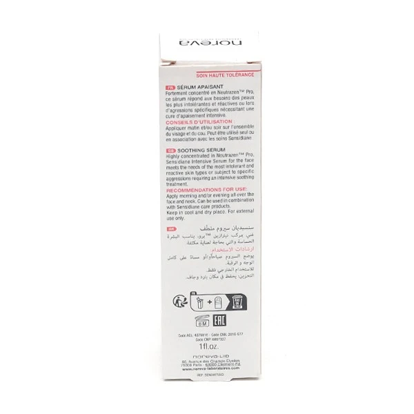 La formule de ce sérum intensif se base sur le complexe Neutrazen Pro, qui contribue à réduire la sensibilité cutanée et à protéger la peau. D’autres composants viennent s’ajouter comme la glycérine, hydratante et nourrissante et l’allantoïne, apaisante et adoucissante. Le sérum Sensidiane contient aussi des actifs d’origine naturelle comme l’extrait de figue qui améliore l’élasticité de la peau, des stérols végétaux qui limitent les inflammations et les irritations ou encore l’huile d’avocat qui lutte contre les effets néfastes des radicaux libres et aide l’épiderme à cicatriser.