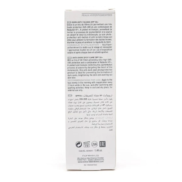 Le soin anti-taches Noreva Trio White XP atténue les taches déjà formées et disgracieuses, mais il agit également pour prévenir et empêcher l’apparition de nouvelles marques. De plus, il régénère l’épiderme et illumine le teint. Avec l’aide d’un trio de filtres UV qui constitue une très haute protection contre les rayonnements UVA-UVB et une conjugaison de Reductol 4P+, K-protect et Evenpro, ce soin est en mesure de freiner le processus de pigmentation à la source, notamment en ciblant le cœur du mélanocyte.