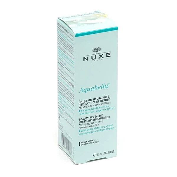 Cette émulsion hydratante Nuxe Aquabella, composée à 93.5% d’ingrédients d’origine naturelle, propose une combinaison qui traite les deux zones conjointement.
