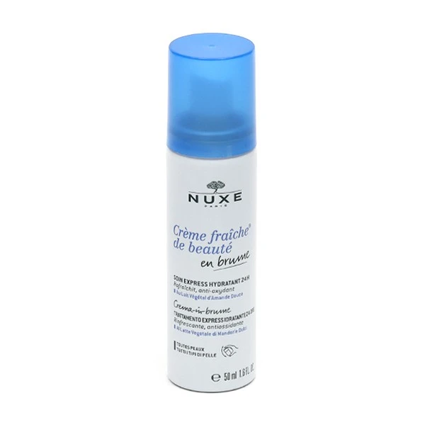 Nuxe Crème fraîche de beauté en brume est une véritable crème hydratante, mais conditionnée en spray. Ainsi, elle associe l’efficacité de la crème hydratante à la légèreté et la délicatesse de la brume. Elle est très facile à appliquer et offre jusqu’à 24 heures d’hydratation. Elle peut être utilisée à n’importe quel moment de la journée afin de réhydrater la peau. Elle possède une action rafraîchissante bienvenue et délivre un délicieux parfum de Fleur d’Oranger. Enfin, elle est adaptée à toutes les peaux.