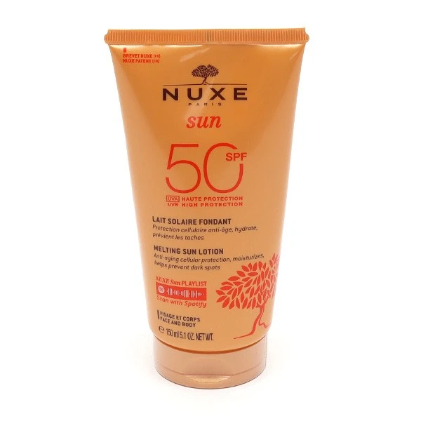 Le soleil, dans sa grande générosité, vous irradie de sa lumière et de sa chaleur, mais vous impose également ses rayons UV qui peuvent se montrer agressifs, voire nocifs pour la peau. Outre les coups de soleil inhérents à une exposition prolongée et négligée, les UVA ont la capacité de pénétrer en profondeur dans le derme et d’occasionner des lésions importantes au niveau cellulaire, avec pour conséquences des dysfonctionnements métaboliques tels que l’hyperpigmentation ou l’apparition de cancer. Doté de filtres de haute protection, le lait fondant Nuxe Sun fait office de bouclier et préserve la peau d’un vieillissement prématuré.