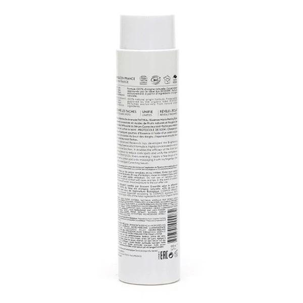 Patyka essence micro-peeling éclat estompe les taches pigmentaires grâce à ses actifs. En effet, il est formulé avec un complexe aux acides de fruits qui va effectuer un peeling doux de la peau. Ainsi, l’élimination des cellules mortes réduit les taches, ces cellules contenant la mélanine. Le peeling va également avoir une action stimulante sur le renouvellement des cellules. Le teint est ravivé, la peau est lissée.