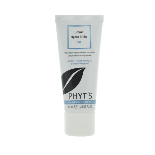 La crème Hydra Riche bio de Phyt’s est formulée avec des ingrédients sélectionnés pour leurs bienfaits sur les peaux déshydratées sèches à très sèches. Il intègre de l’acide hyaluronique, un actif très hydratant. Celui-ci est présent sous deux formes : une de bas poids moléculaire, qui va agir en profondeur, et une de haut poids moléculaire, qui va hydrater en surface et constituer une barrière protectrice. Il contient du beurre de karité régénérant, cicatrisant et hydratant, ainsi que des huiles d’amande douce et de tournesol émollientes. Par ailleurs, il est formulé avec de la vitamine E qui va contrer l’action des radicaux libres. Enfin, il apporte de la cire d’abeille. Celle-ci va constituer un film protecteur sur la peau.