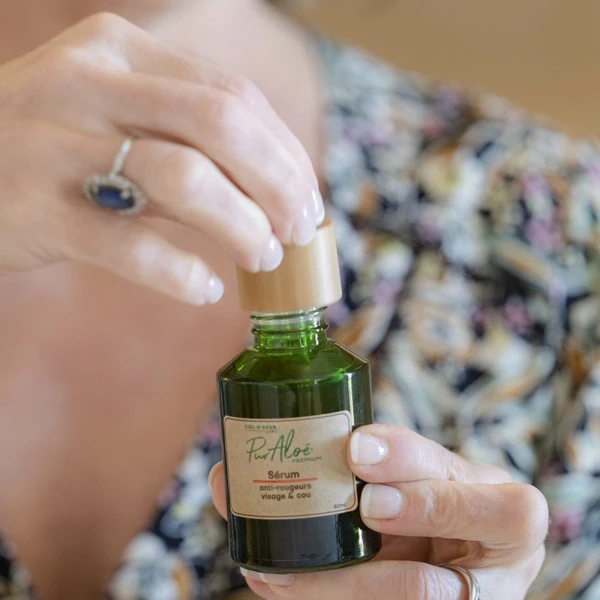 Pour apaiser la peau et lutter contre ces rougeurs, Pur Aloé, dans sa gamme Premium, propose ce sérum anti-rougeurs. Il est formulé avec une synergie d’aloès, associant aloe vera et aloe arborescens. Les feuilles du second type d’aloé génèrent moins de jus, mais celui-ci a une plus forte concentration en actifs. Ces aloès vont apporter à la peau leurs bienfaits apaisants et l’hydrater. Ainsi calmée, la peau ne subit plus de rougeurs.
