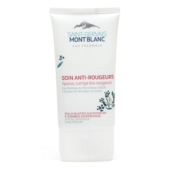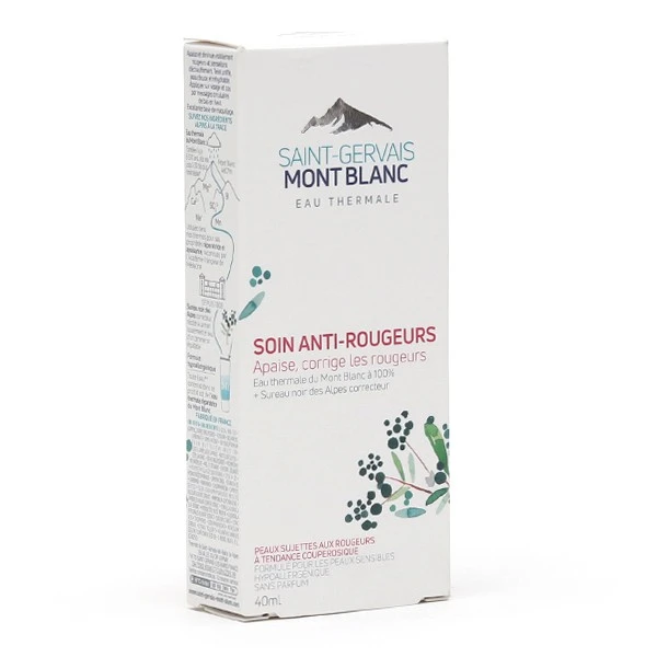 Ce soin anti-rougeurs contient de l’extrait de sureau noir des Alpes, un actif qui va attĂ©nuer visiblement les rougeurs dès la première application. Il est associĂ© Ă des extraits de ruscus, de calendula et de rĂ©glisse, trois ingrĂ©dients ajoutĂ©s Ă la formule dans le but de stimuler la micro-circulation sanguine et rĂ©duire la visibilitĂ© des petits vaisseaux. Comme tous les produits de la marque, ce soin est enrichi en eau thermale pure du Mont-Blanc, rĂ©putĂ©e pour son action bĂ©nĂ©fique sur de nombreux problèmes de peau. Cette eau possède en effet des vertus anti-inflammatoires, apaisantes et rĂ©paratrices qui conviennent parfaitement aux peaux les plus sensibles.