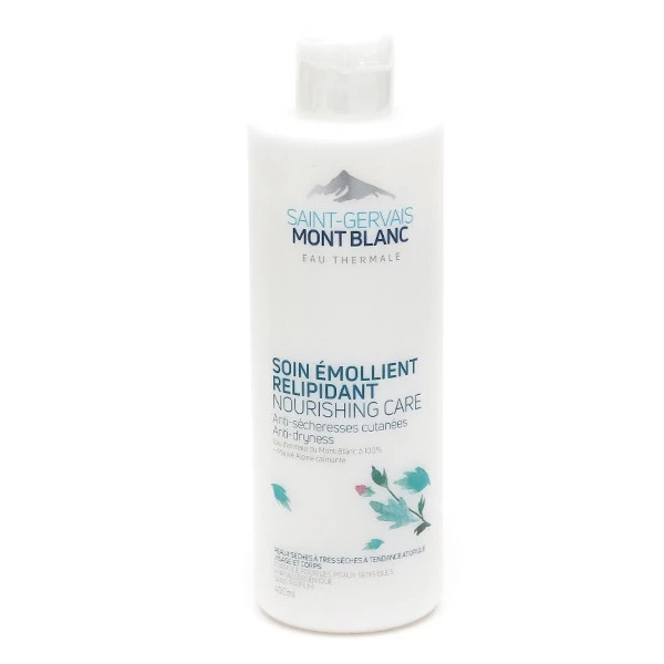 Le soin émollient relipidant de Saint Gervais Mont Blanc contient de l’eau thermale du Mont Blanc, qui apporte ses propriétés réparatrices à la peau sèche sensible. Ainsi, grâce à ce soin émollient, la peau est nourrie et apaisée. Elle redevient confortable. Son teint s’illumine.