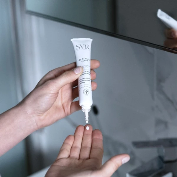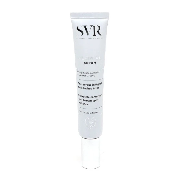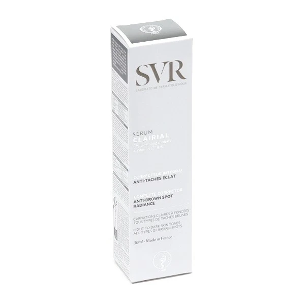 Le sérum correcteur SVR Clairial estompe, prévient et limite les taches brunes sur le visage, le décolleté et les mains. Sa formule convient à tous les types de peaux, mêmes sensibles et s’adapte également à toutes les carnations des plus claires aux plus foncées.