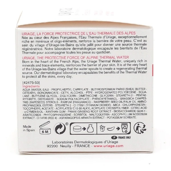 Les extraits de ginseng et d’algues rouges viennent quant à eux renforcer les parois des vaisseaux sanguins pour éviter qu’ils ne soient visibles à la surface de la peau. On retrouve aussi dans la composition du beurre de karité, actif mythique connu pour ses vertus nourrissantes, protectrices et réparatrices, ainsi que de l’eau thermale d’Uriage, dont les propriétés apaisantes et anti-inflammatoires ont été largement démontrées.