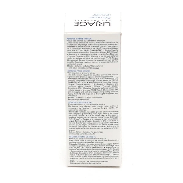 La formule de cette crème Uriage Xémose est enrichie en composants qui agissent en synergie et apportent des bénéfices complémentaires à la peau. Comme tous les produits de la marque, elle contient de l’eau thermale d’Uriage, réputée pour son action apaisante, anti-irritante et rééquilibrante. On retrouve également dans la composition du beurre de karité, réputé pour ses vertus nourrissantes, réparatrices et protectrices. De la glycérine est également ajoutée pour apporter l’hydratation nécessaire à la peau.