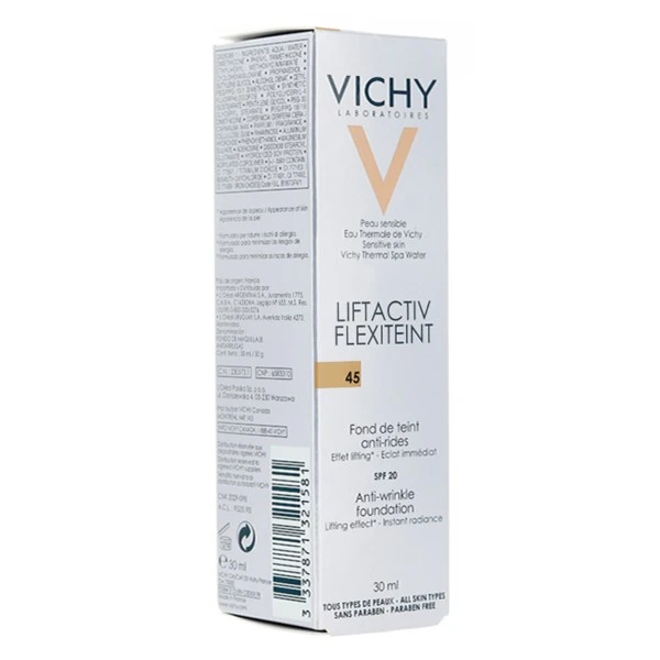 Le fond de teint Liftactiv de Vichy est décliné en cinq teintes afin de s’adapter aux différentes carnations : très clair, clair, moyen, doré, hâlé. Il rend la peau plus éclatante et lumineuse et conserve son effet tenseur pour toute la journée.