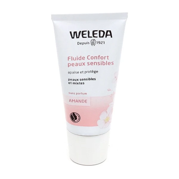 L’amandier, dont sont extraites les amandes, permet d’élaborer une des huiles les plus douces et la mieux tolérée par la peau. Ce fluide confort en retire les propriétés adoucissantes, nourrissantes et protectrices offrant un confort maximum aux peaux sensibles. Naturellement riche en acide oléique, l’huile de prune confère à ce fluide apaisant et protecteur des qualités hydratantes et bienfaitrices. Le fluide confort Weleda Amande est une formule non parfumée, sans huiles essentielles, et contient un minimum d’ingrédients afin d’assurer un soin doux et confortable. Il contribue à aider la peau à retrouver son équilibre naturel. Sa texture légère rend l’application agréable.